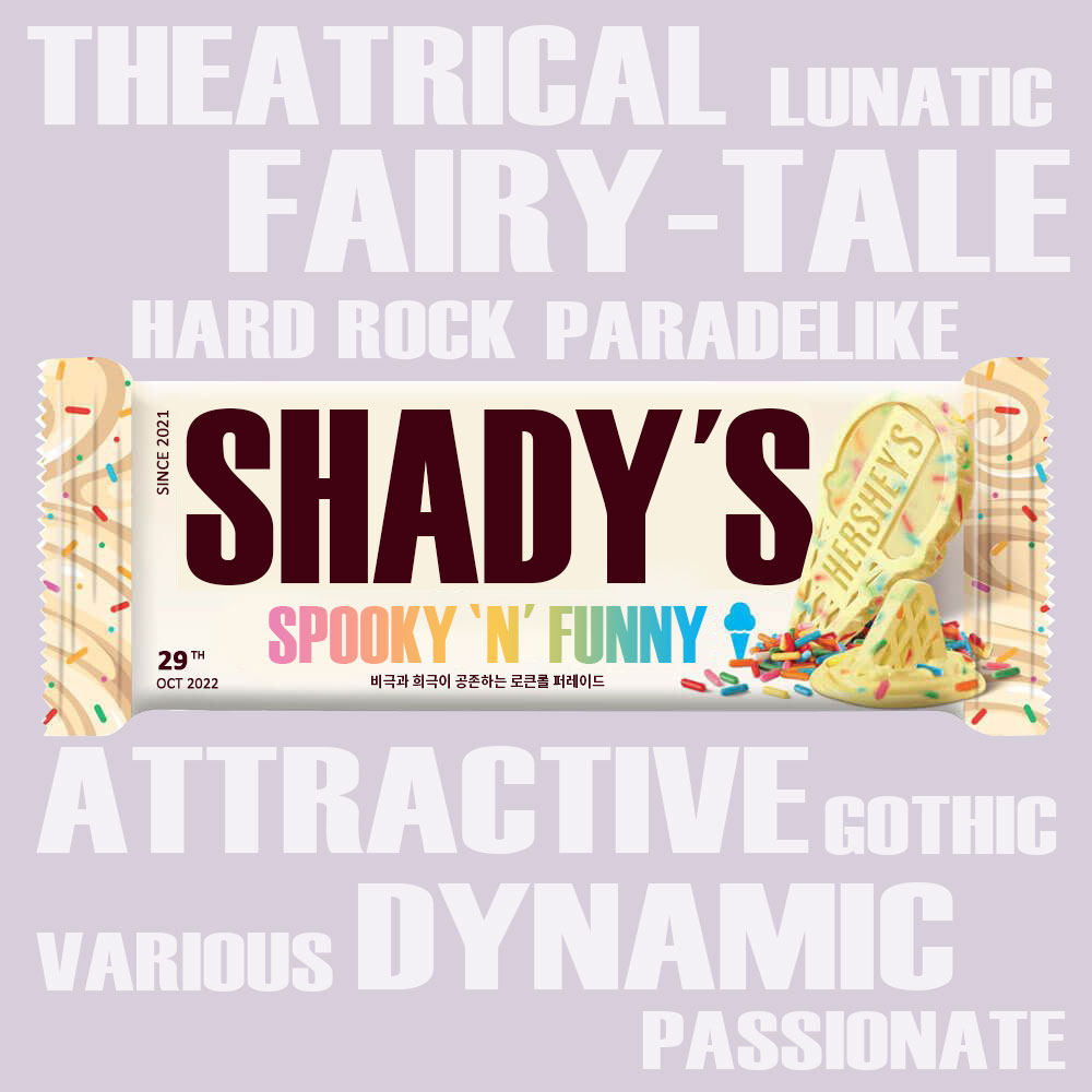밴드 셰이디(SHADY) 주최로 열리는 이번 공연에는 셰이디 외에 뮤즈에로스, 오버드라이브 필로소피, 칠보장, 머티리얼즈 파운드가 함께한다. 셰이디의 슬로건이 ‘귀염둥이 록 밴드’이니만큼, 할로윈 기념 한 움큼 공짜 사탕과 깜짝 무료분장, 기분이 좋아지는 합법 가루 등 소소한 즐길 거리도 준비되어 있어 “Trick or Treat!(사탕 주면 안 잡아먹지)”라고 외치는 다섯 밴드의 개성 넘치고 재치 있는 공연이 될 전망이다.