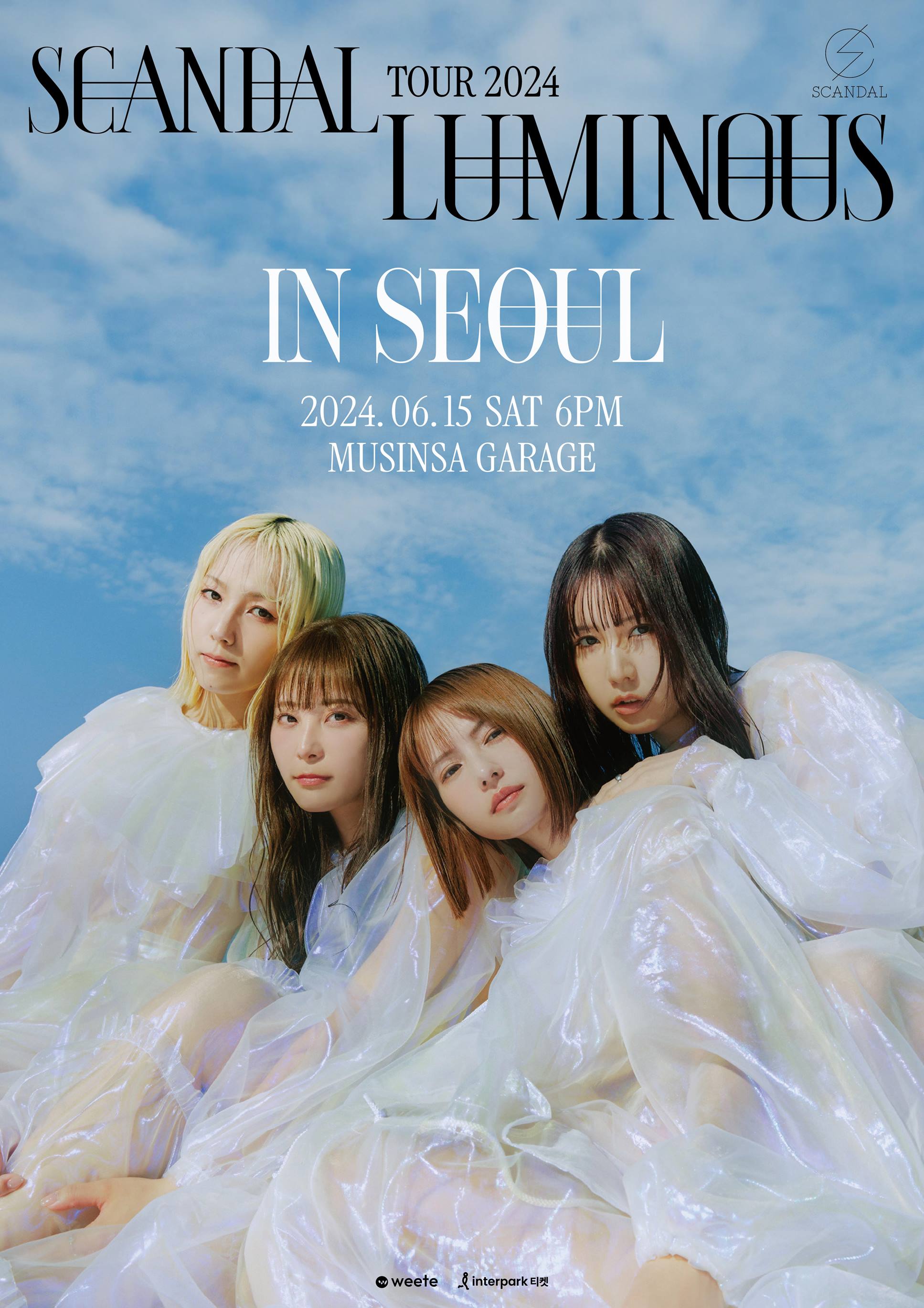 단독 콘서트 [SCANDAL TOUR 2024 <LUMINOUS> IN SEOUL]은 6월 15일(토) 저녁 6시 마포구 소재 무신사 개러지에서 진행될 예정이다. 이번 내한은 지난 ‘2014년 펜타포트 록페스티벌’ 이후 10년 만에 처음으로 더욱 눈길을 끈다. 정규 11집 앨범 발매를 기념해 지난 4월 2일부터 시작한 일본 전국 투어와 아시아 4개 도시 타이베이, 광저우, 상하이를 거쳐 서울 공연으로 마무리될 예정이다.